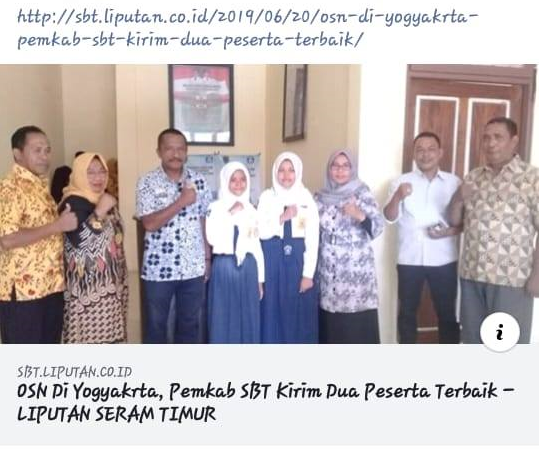 Alhamdulillah di tahun 2019, SMPN 4 SBT kembali berhasil sebagai salah satu wakil Olimpiade Sains Nasional (OSN) Tk. Nasional setelah melalui tahapan seleksi dari tingkat kabupaten hingga provinsi.